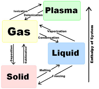 “… Plasma is often called the fourth state of matter. It is distinct from the three lower-energy phases of matter; solid, liquid, and gas, although it is closely related to the gas phase in that it also has no definite form or volume. There is still some disagreement as to whether a plasma is a distinct state of matter or simply a type of gas. …” – http://www.plasma-universe.com/Plasma