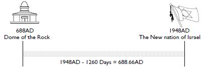 The Abomination of Desolation (of Daniel) was set up in 688 AD.1948 – 688 = 1260